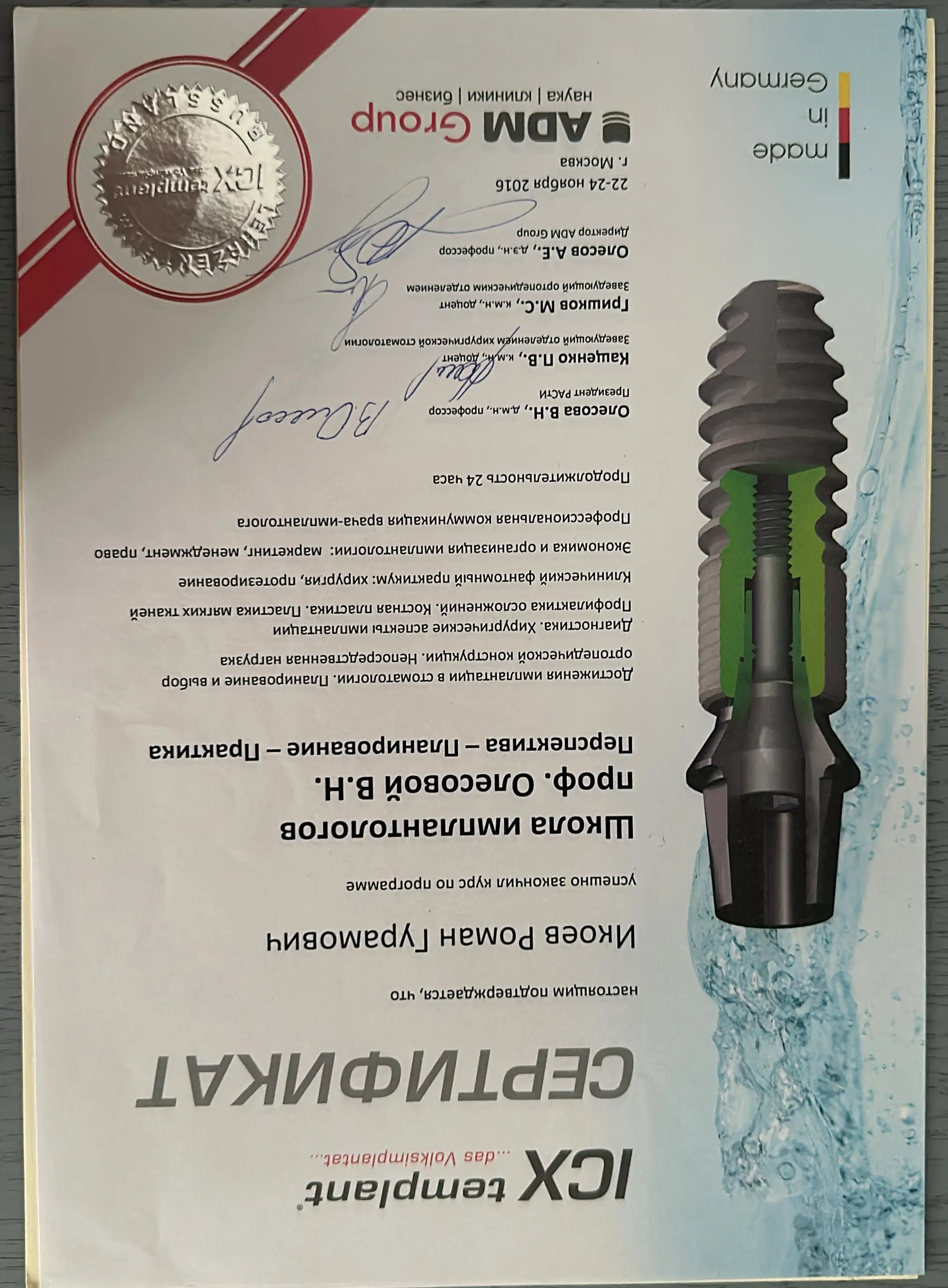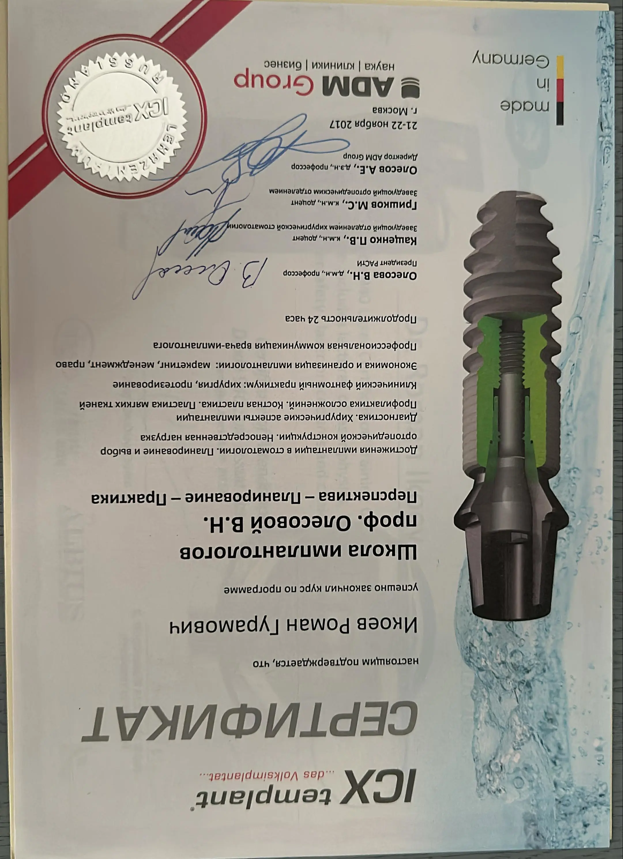 2017 г. — Повышение квалификации в «Клиническом центре стоматологии ФМБА России»