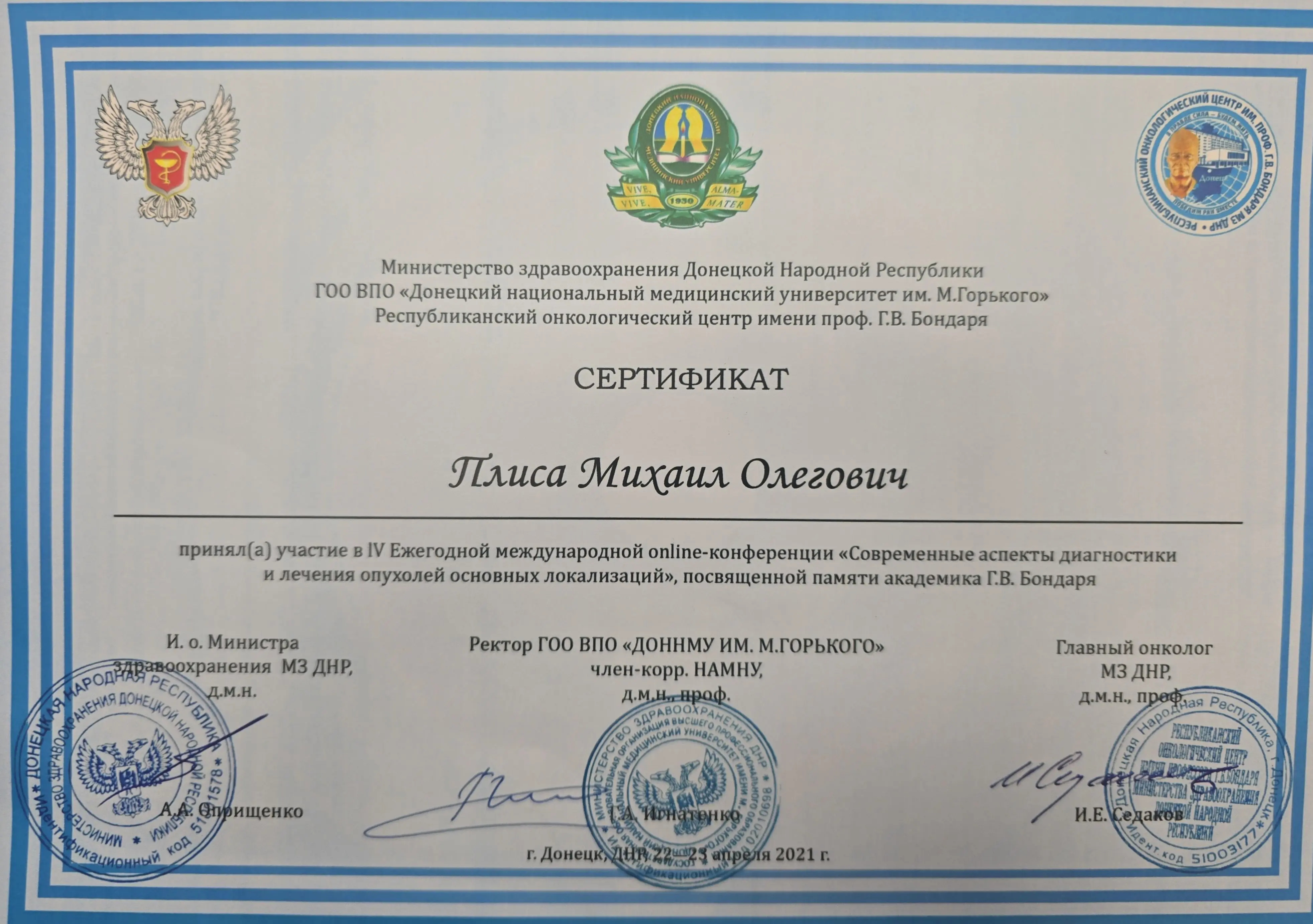 Выпускник ДонНМУ им. М.Горького