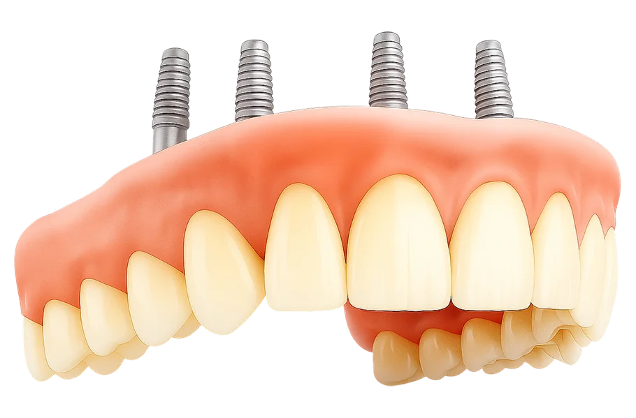 Современная методика, когда всего четыре импланта удерживают целый ряд зубов